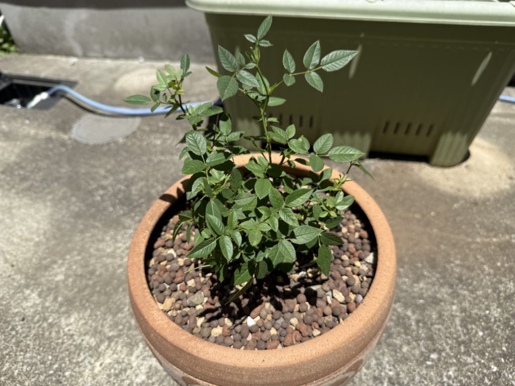 特売のミニバラの苗を素焼きの鉢で育てる vol.1