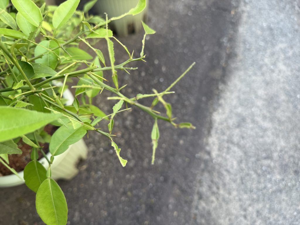 もちろん、葉を失ったスダチはぐんぐん成長するわけでもなく、花の兆しも見せない。