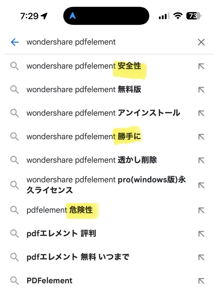 なんとなく気になって、「wondershare pdfelement」でGoogle検索をかけてみた。